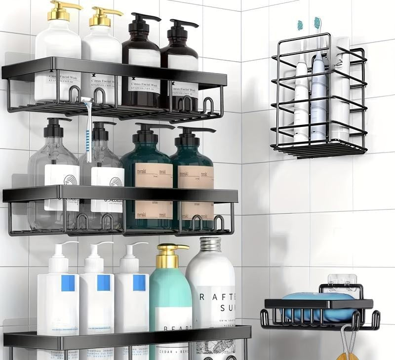 Our rust-proof shower shelves are designed to keep your bathroom clean, modern, and clutter-free. Made with strong corrosion-resistant materials and powerful adhesive mounting, they hold up to 40LB — perfect for full-size bottles, soaps, razors, and skincare. No drilling needed — just clean storage, maximum space, and a tidy shower every day.